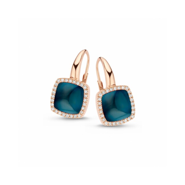 Pantelleria Boucles d'oreilles Pantelleria, topaze Swiss Blue sur nacre en or rose 750/1000