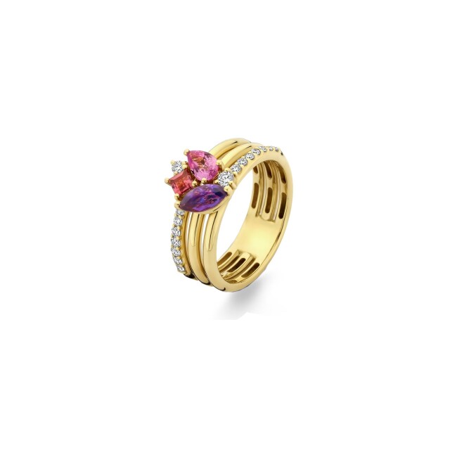 Bague en or jaune, améthyste, tourmaline rose, saphir rose et diamants
