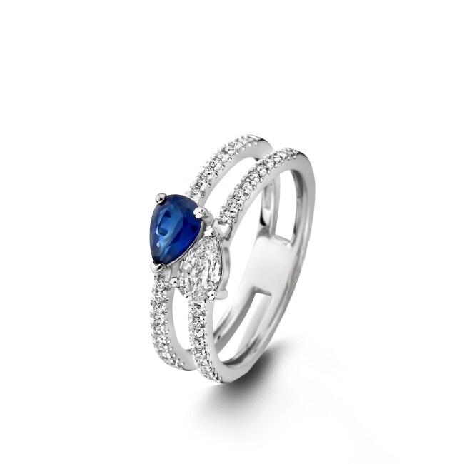 Bague multiples anneaux Au750 Or blanc 18 ct 38 Diamant(s) taille brillant 0.18 ct 1 Diamant(s) taille poire 0.26 ct Saphir Bleu 0.48 ct