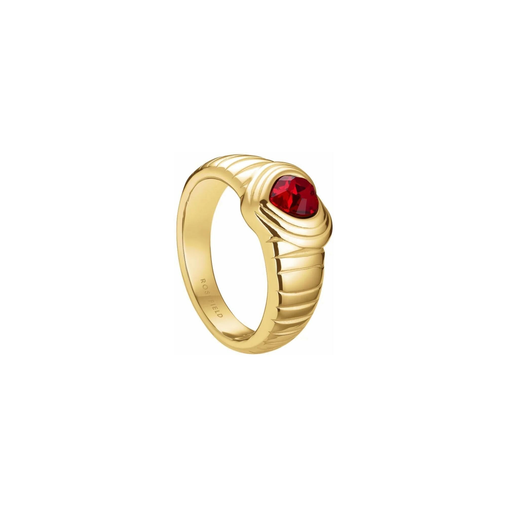 Bague Rosefield cœur strié zircon rubis et acier doré et acier doré, taille 50