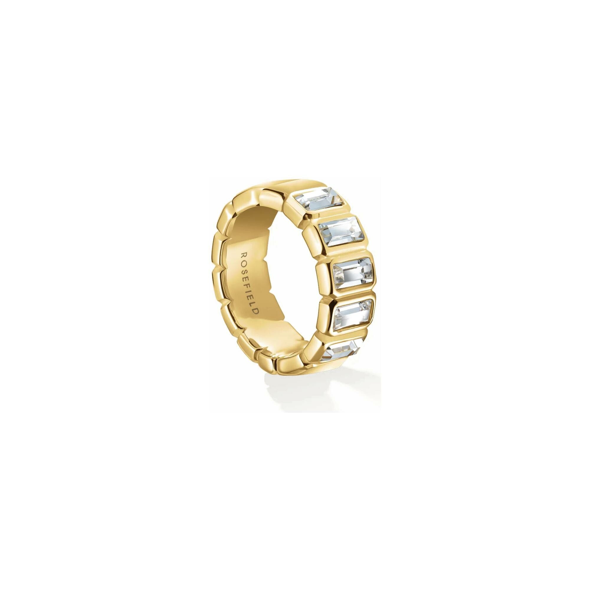 Bague Rosefield octogonale en acier doré iconique, taille 56