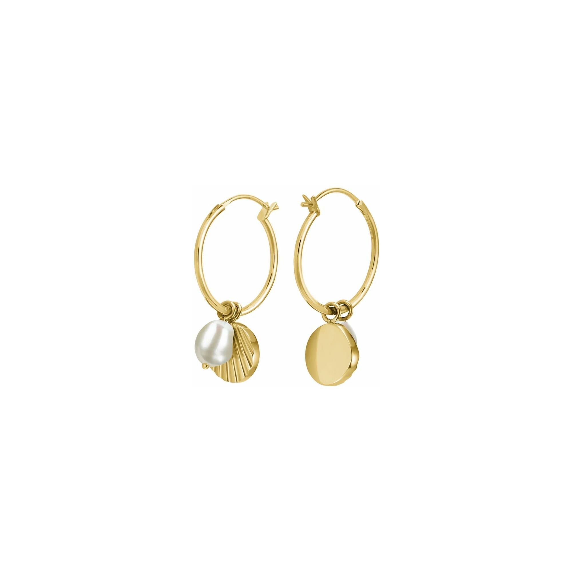 Boucles coquillage et perle en acier doré