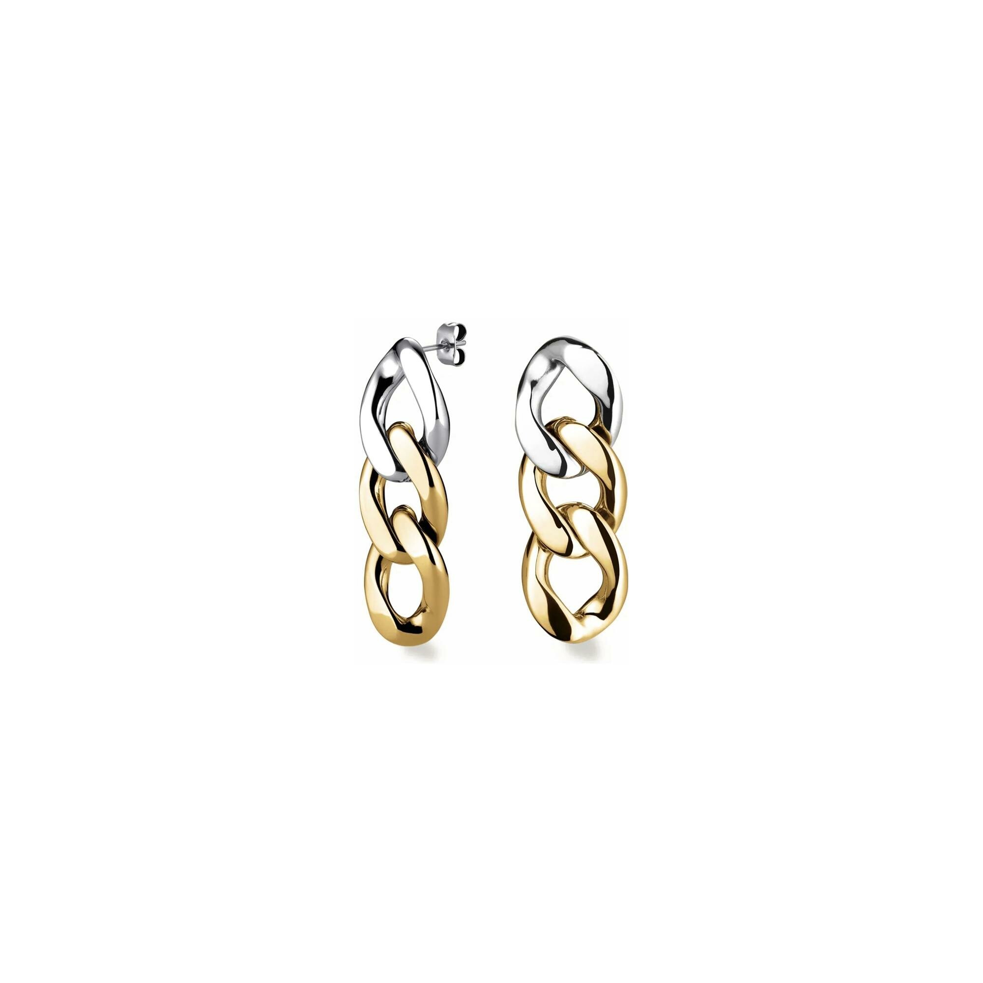 Boucles d'oreilles Rosefield chaîne bicolores en acier argenté et doré