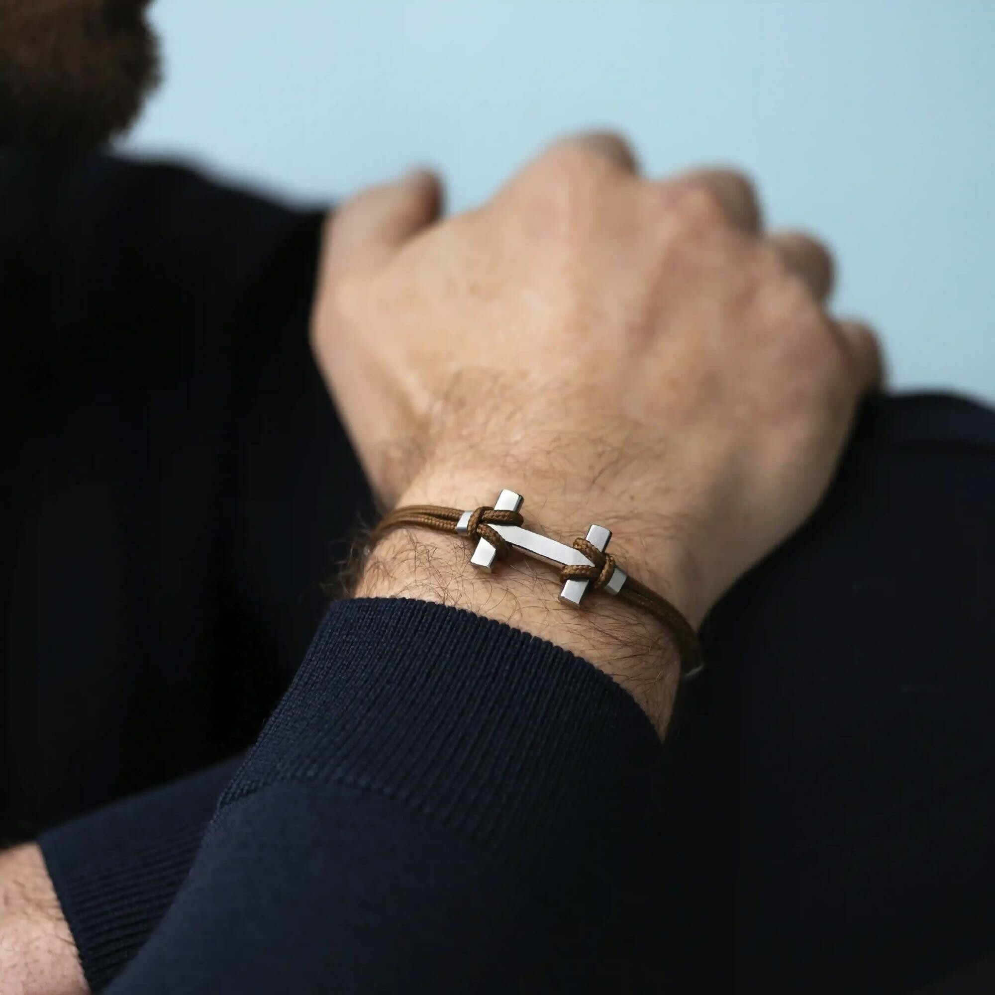 Amarrage Bracelet Herbelin Amarrage en acier brossé et nylon brun clair