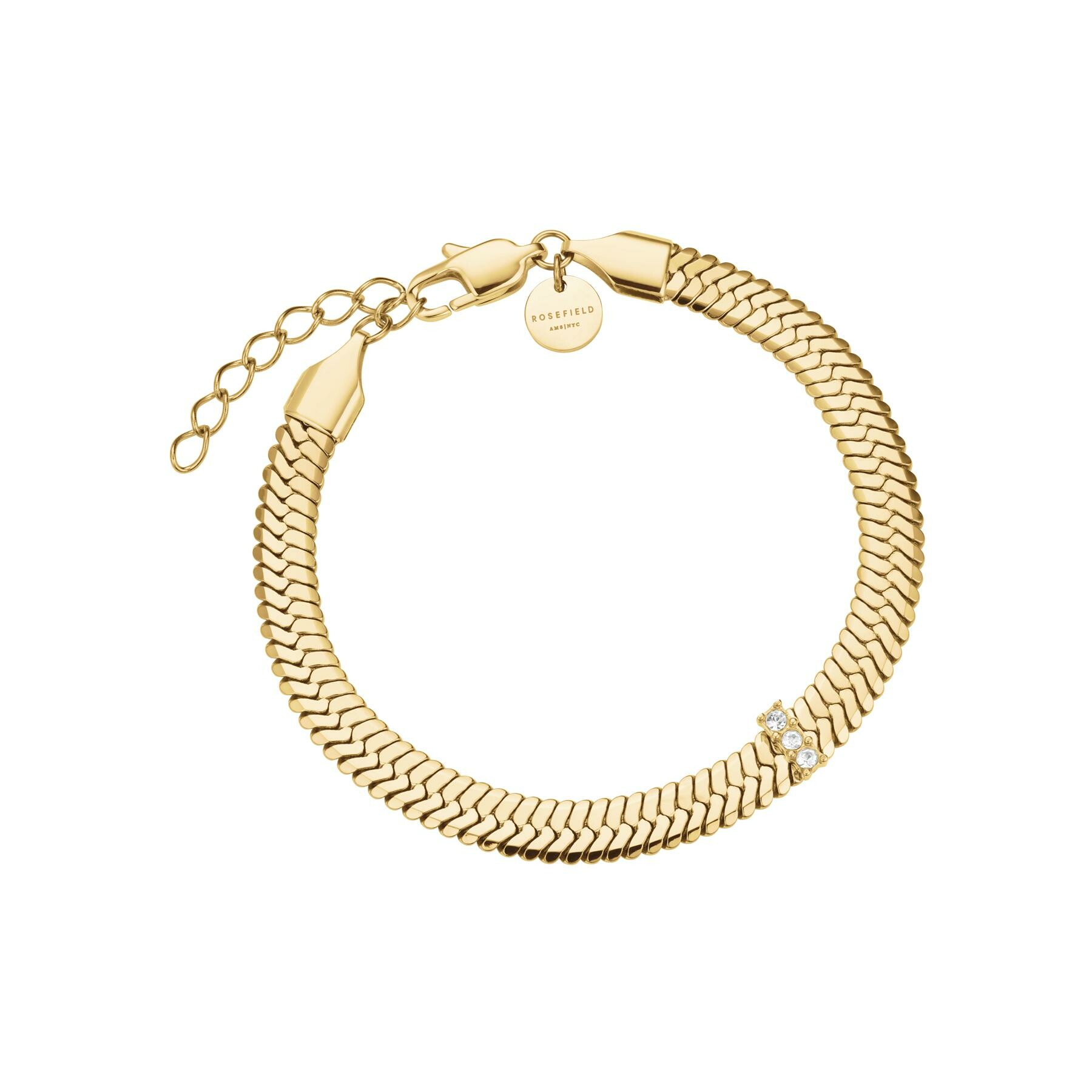 Snake Evolution Bracelet Rosefield Snake Evolution en acier doré et zircon