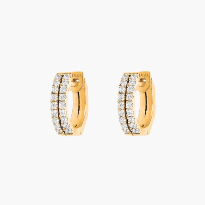 L'alliance de l'or jaune 750/1000 et de la pierre précieuse fait de ces créoles un accessoire de luxe indispensable, alliant minimalisme et sophistication. Que ce soit pour illuminer une tenue quotidienne ou parfaire un look de soirée, ces boucles d'oreilles diamants signées Djula offrent une esthétique architecturale unique. Affirmez votre style avec ce bijou de créateur qui transforme la rigueur géométrique en une véritable déclaration d'élégance.