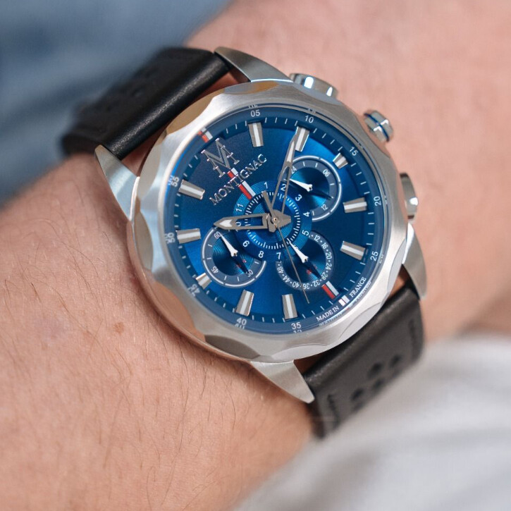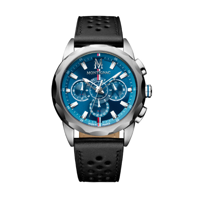 Propulsée par un mouvement SEIKO VD54, elle offre une précision chronométrique absolue. Le détail qui fait la différence : son bracelet en cuir perforé, hommage direct aux finitions des voitures de sport, qui allie respirabilité et élégance racée.